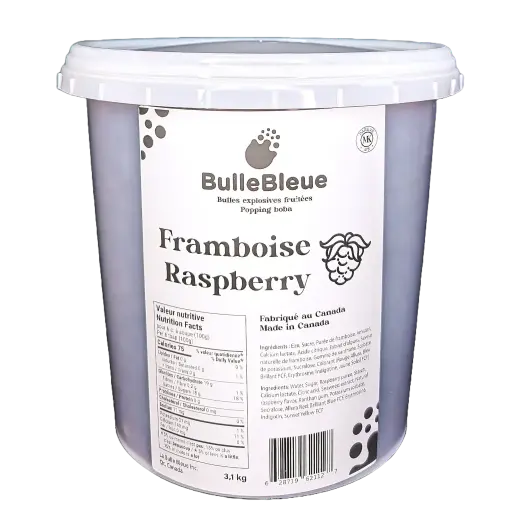 Apportez une touche gourmande et fruitée à vos boissons avec nos bulles à saveur de framboise rouge, créées par Bulle Bleue. Leur goût sucré et légèrement acidulé donne une dimension délicieuse à vos bubble tea, smoothies, cocktails ou desserts.