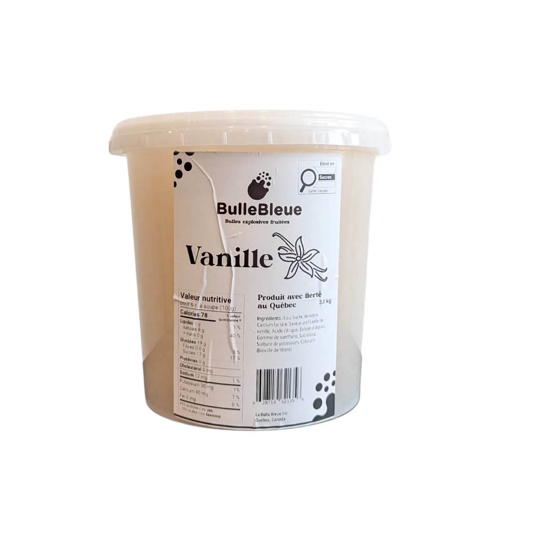 Apportez une touche gourmande et raffinée à vos boissons avec nos bulles à saveur de vanille, créées par Bulle Bleue. Leur goût délicat, rehaussé par une touche de sucre ajouté, s’harmonise parfaitement avec vos bubble tea, smoothies, cafés glacés ou desserts pour une expérience encore plus savoureuse.